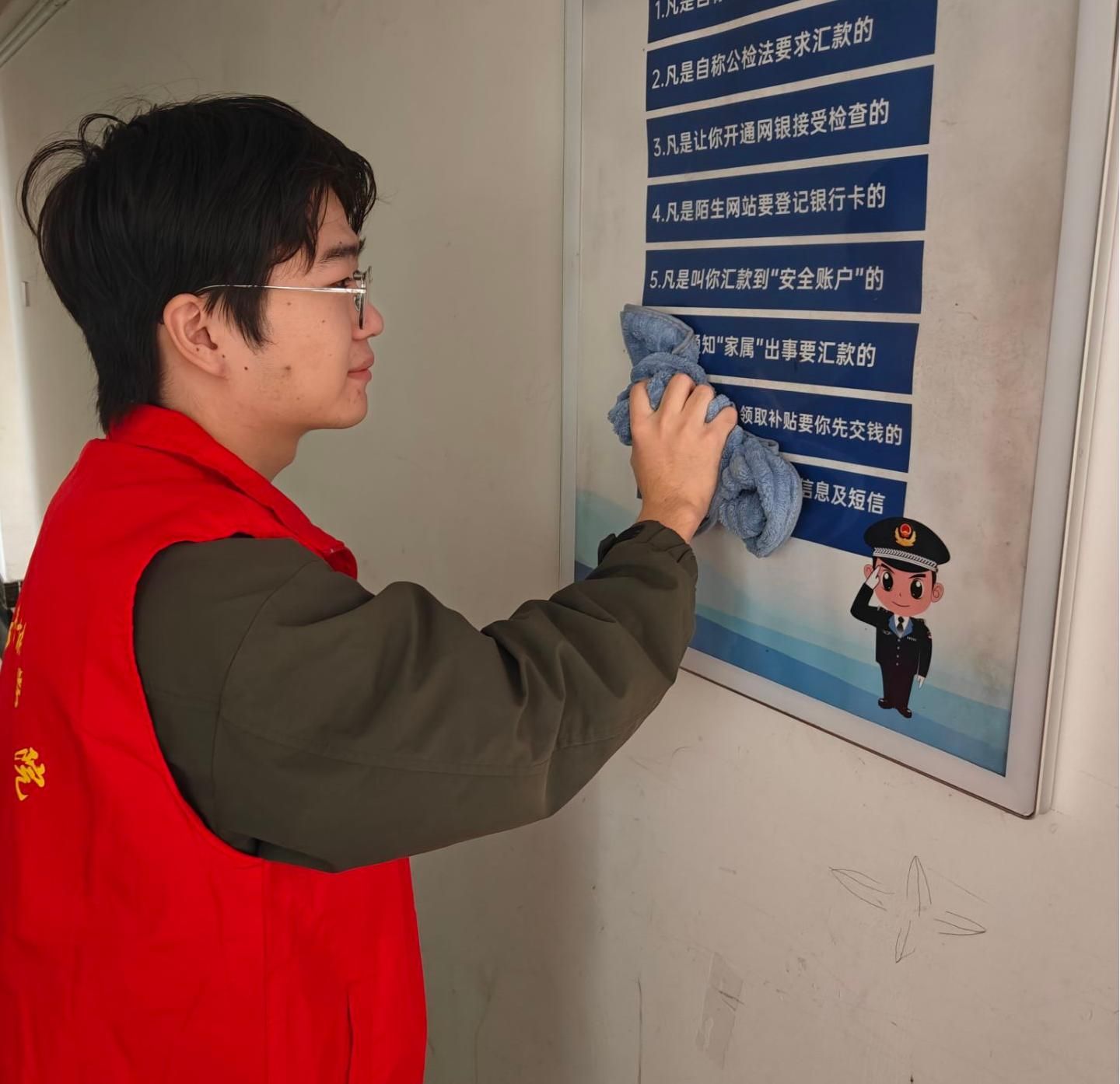活动伊始,全体参与人员在实教中心集合,经过简要的任务分工与安全动员后,迅速投入劳动实践。本次清扫工作以小组为单位展开,各小组在组长的带领和协调下,分工明确、配合默契。同学们手持清洁工具,细致清扫楼道杂物、拖拭地面、擦洗楼梯扶手,并重点将消火栓箱从外到内彻底擦拭一新。对于公共区域随意摆放的雨伞,同学们也细心整理收集,在活动后及时归还至各寝室同学手中。最后,大家将分类打包的垃圾统一运送至指定堆放点。此次清扫工作得到了宿管黄阿姨的高度认可,她欣慰地说:“同学们打扫得非常彻底,连卫生死角都清理得干干净净,还贴心整理归还雨伞,这种服务精神值得点赞!”