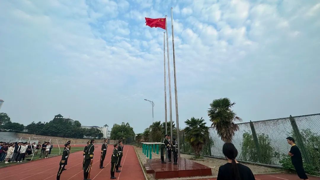 仪式在主持人叶娜的开场词中拉开帷幕。她紧扣“国旗砺初心,青春担使命”的核心主题,深刻阐述此次升旗仪式的意义——既是激发智能学子爱国热情的精神洗礼,更是引导青年一代勇担时代重任的思想动员,为整场仪式奠定了庄重而激昂的基调。