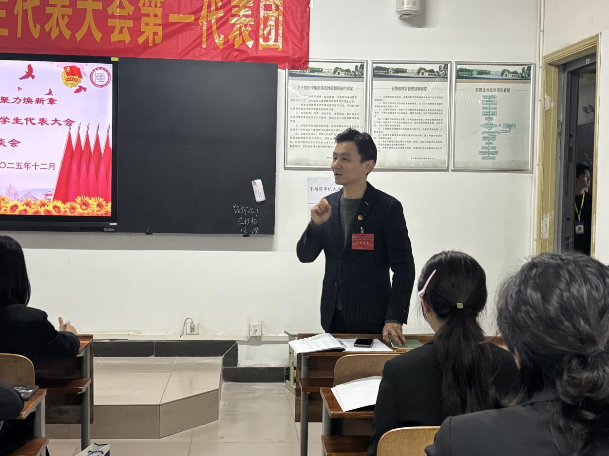 座谈会伊始,余书记首先围绕第十五次学代会的重要意义进行动员讲话。他指出,学生代表大会是学生参与学院民主管理、行使民主权利的重要平台,第十五次学代会的召开是学院学生政治生活中的一件大事。他希望全体学生代表以高度的责任感和使命感,认真履行代表职责,充分发挥桥梁纽带作用,真实反映同学心声,积极建言献策,为学院发展和学代会顺利召开贡献青春力量。同时,余书记对学生代表提出期望:要立足自身成长经历,聚焦学习生活中的重点难点问题,畅所欲言、实事求是,让建议更具针对性和可操作性。