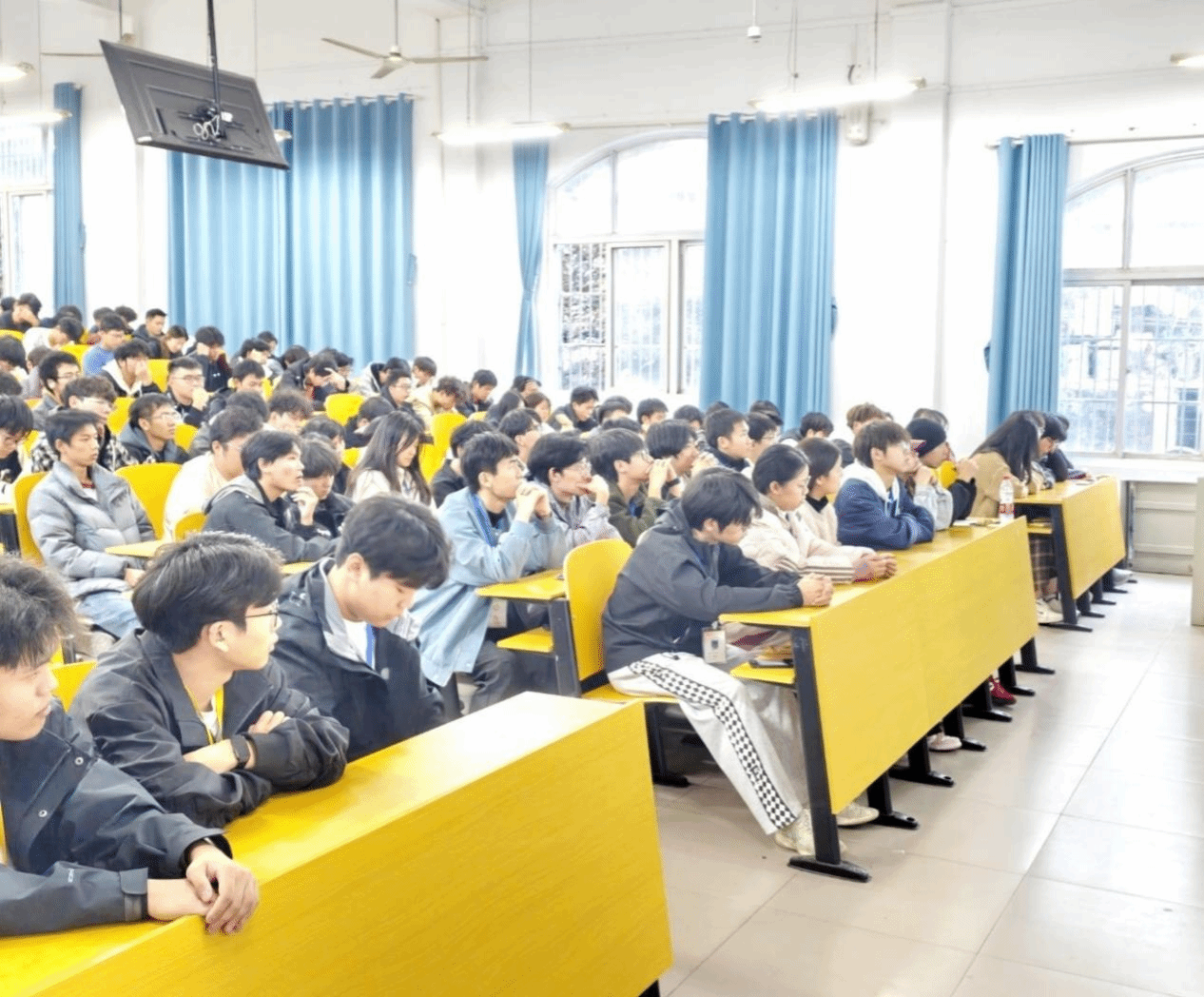 在互动交流环节,同学们热情高涨,围绕专业知识学习、个人职业规划、行业未来趋势等核心问题踊跃提问。黄志峰耐心倾听,逐一给出细致且专业的解答。他鼓励同学们筑牢专业自信,主动拓宽发展视野,不要局限于眼前的知识,更要着眼于未来的发展趋势。当有同学表达“担心所学知识跟不上行业变化”的担忧时,黄志峰微笑着回应道:“大学教育的意义不仅仅在于传授‘知识’,更在于培养‘学习能力’。迷茫并不可怕,可怕的是因为害怕出错而拒绝尝试。要知道,每一次‘试错’都是在为未来的‘正确’积累经验,都是通往成功的必经之路。”