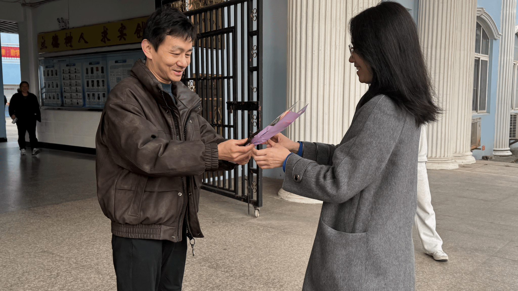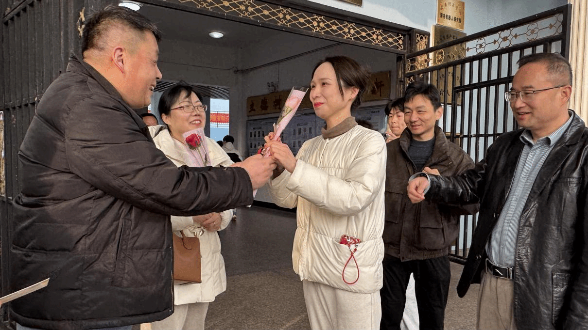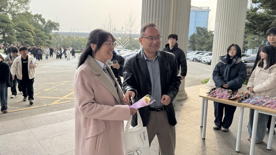 天刚微亮,人工智能学院党总支书记饶浪,副院长安庆、刘逢刚,院办主任张红舰,团委书记余阳便早早来到学院门口等候,与学生骨干们一同为本次献礼活动做好充分准备。当女教师们陆续走进校园,各位领导面带微笑上前,为每一位女教师亲手献上鲜花与巧克力,同时送上暖心的节日祝福,一句句真挚的问候、一份份精致的礼物,让女教师们在清晨便收获了满满的惊喜与温暖。美丽的鲜花承载着学院对女教师们的深情敬意,那盛放的花瓣如同女教师们在教育事业中绽放的光彩,祝愿她们在忙碌的教学科研之余,能常伴芬芳、悦享时光,留住生活中的美好与诗意;香甜的巧克力则传递着学院对女教师们的贴心关爱,丝滑的口感寓意着生活的甜蜜顺遂,希望她们在辛勤耕耘的日子里,能及时补充能量、呵护身心,在忙碌中也能品味生活的甘甜。