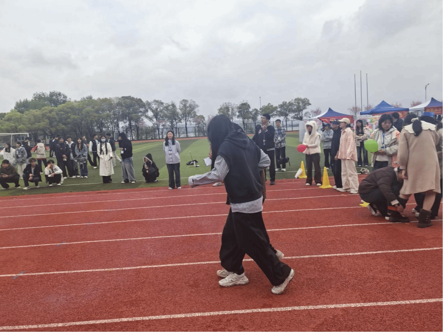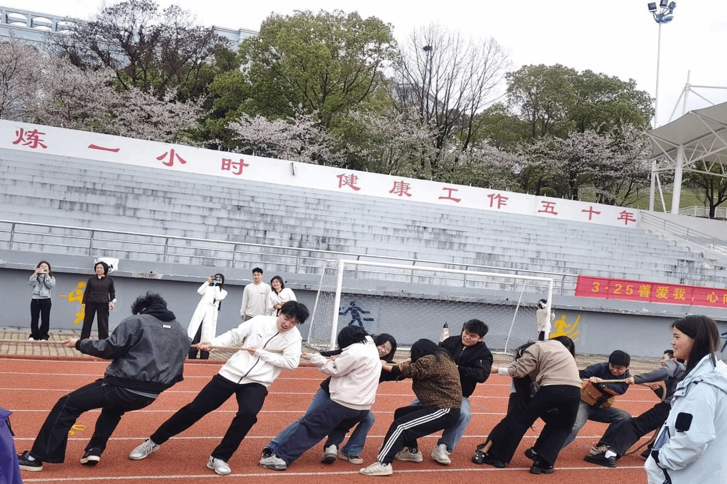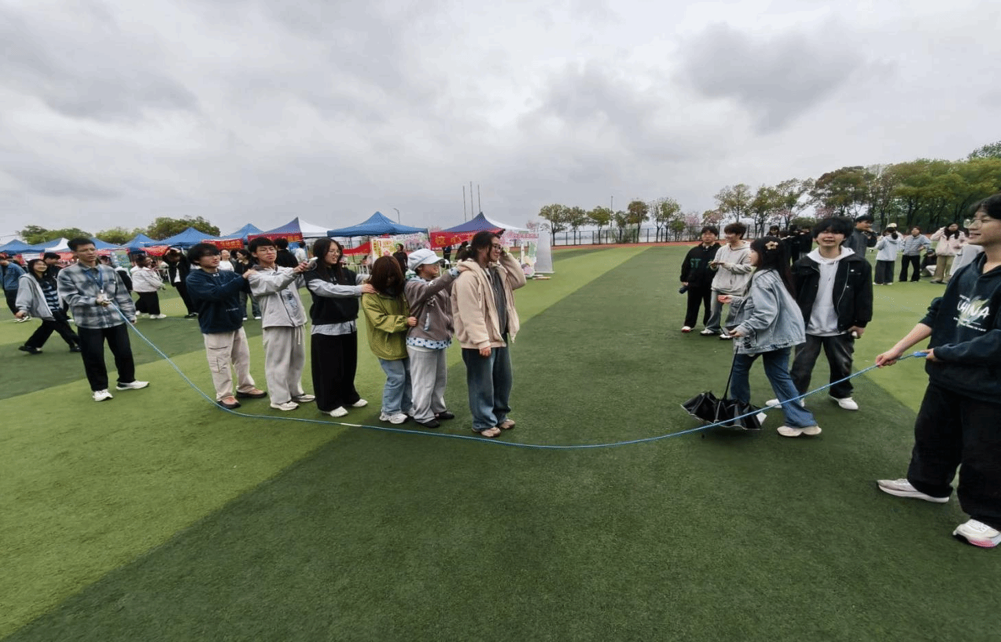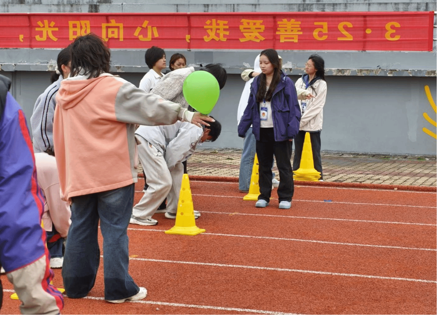 在人工智能学院活动区域,学院代表队踊跃参与奋勇争先团体接力赛、凝心聚力集体跳大绳、同心协力团体拔河赛三项竞技项目。赛场上,队员们默契配合完成两人三足、背靠背夹气球等接力任务,在摇绳与跳跃中展现协同节奏,在拔河比拼中凝聚集体力量,以昂扬姿态展现学院风采。同时,师生们纷纷驻足“向阳告白”巨型心愿墙,写下自我接纳宣言与美好祝福,在“逐光而行”打卡区借助创意手持牌合影留念。