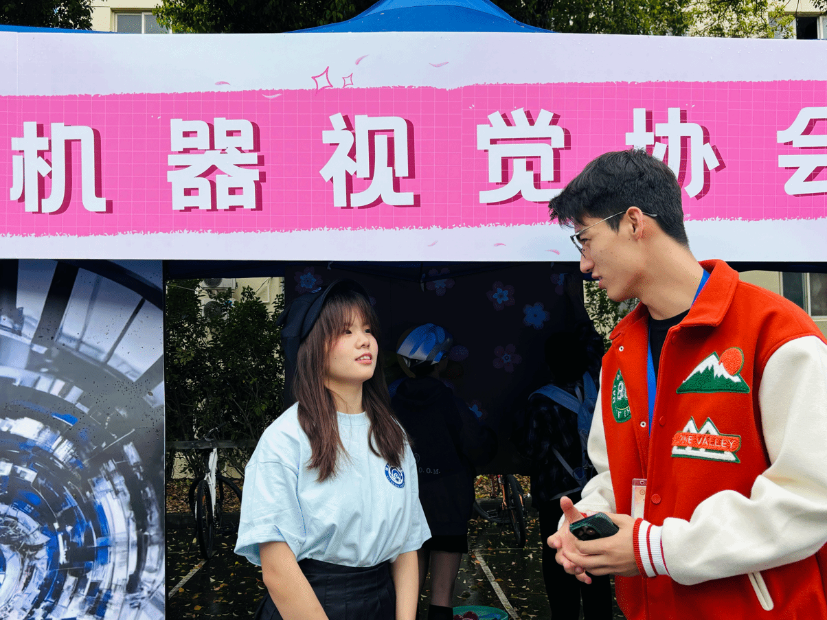 另一边,机器视觉协会以“视觉赋能,智创未来”为核心打造展示专区,不仅通过荣誉墙陈列第三届IPv6大学生创新创业大赛国家级三等奖、“未来杯”高校大数据挑战杯国家级二等奖等成果,更将视觉检测设备、图像识别原型机搬到现场,通过物体识别、目标追踪等动态演示,直观呈现技术应用场景。社团成员围绕设备原理、技术研发过程展开讲解,分享社团在技术实践、项目打磨中的经验,让同学们近距离触摸科创魅力。