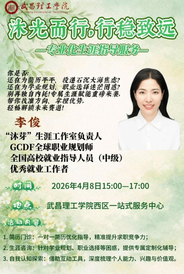 据悉,本次专项指导活动,由致力于学生职业生涯规划指导领域、经验积淀深厚的李俊老师牵头统筹。作为工作室负责人,她长期专注学生成长帮扶,凭借扎实专业的指导能力,为在场学子提供科学、精准的未来发展规划指引。