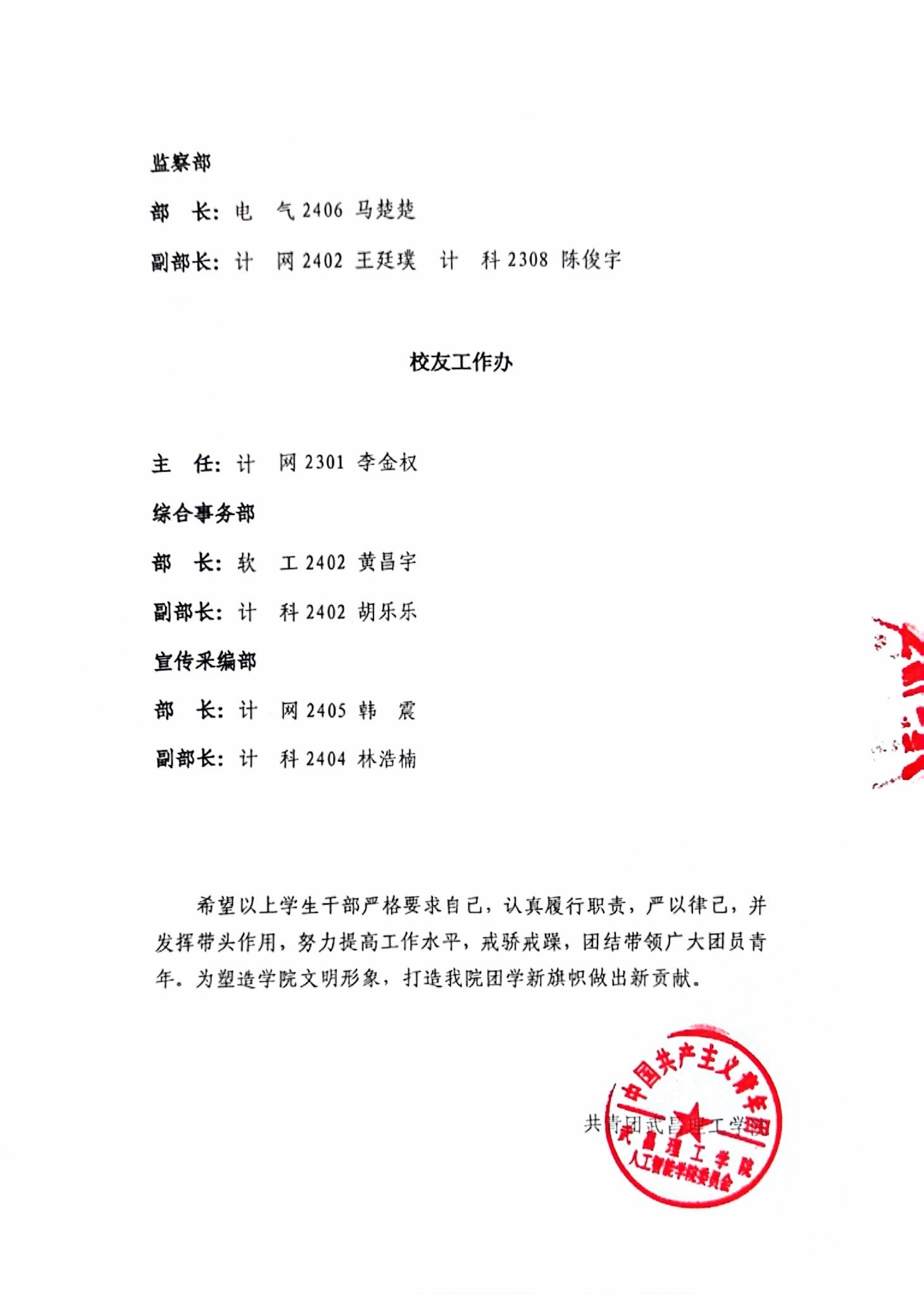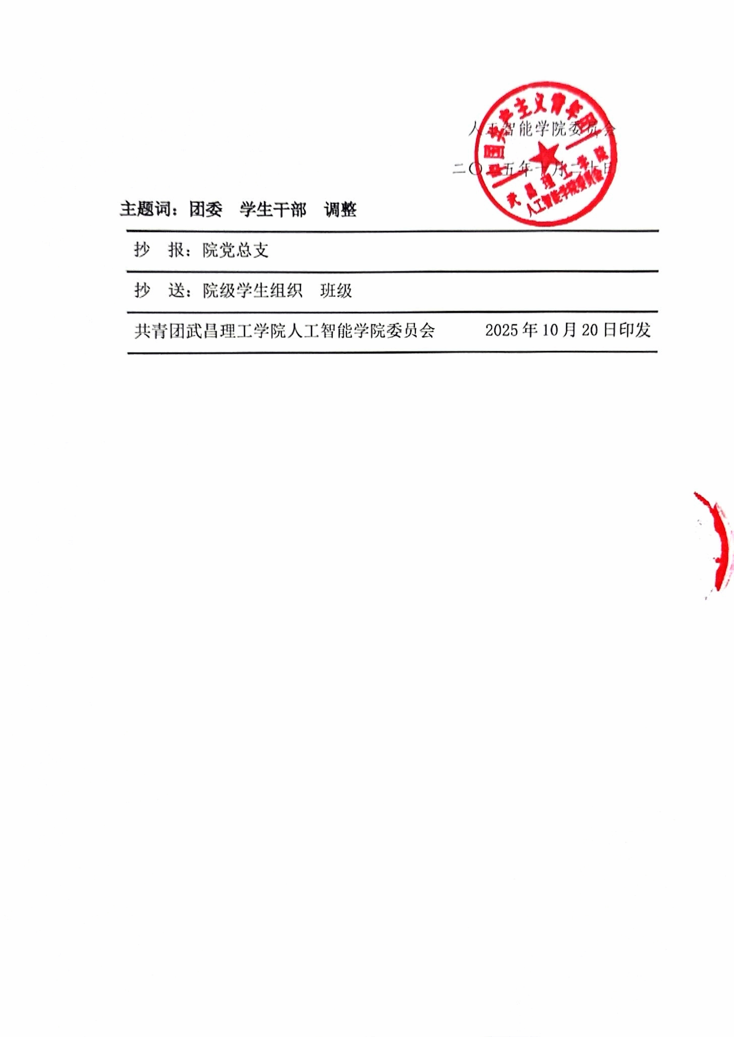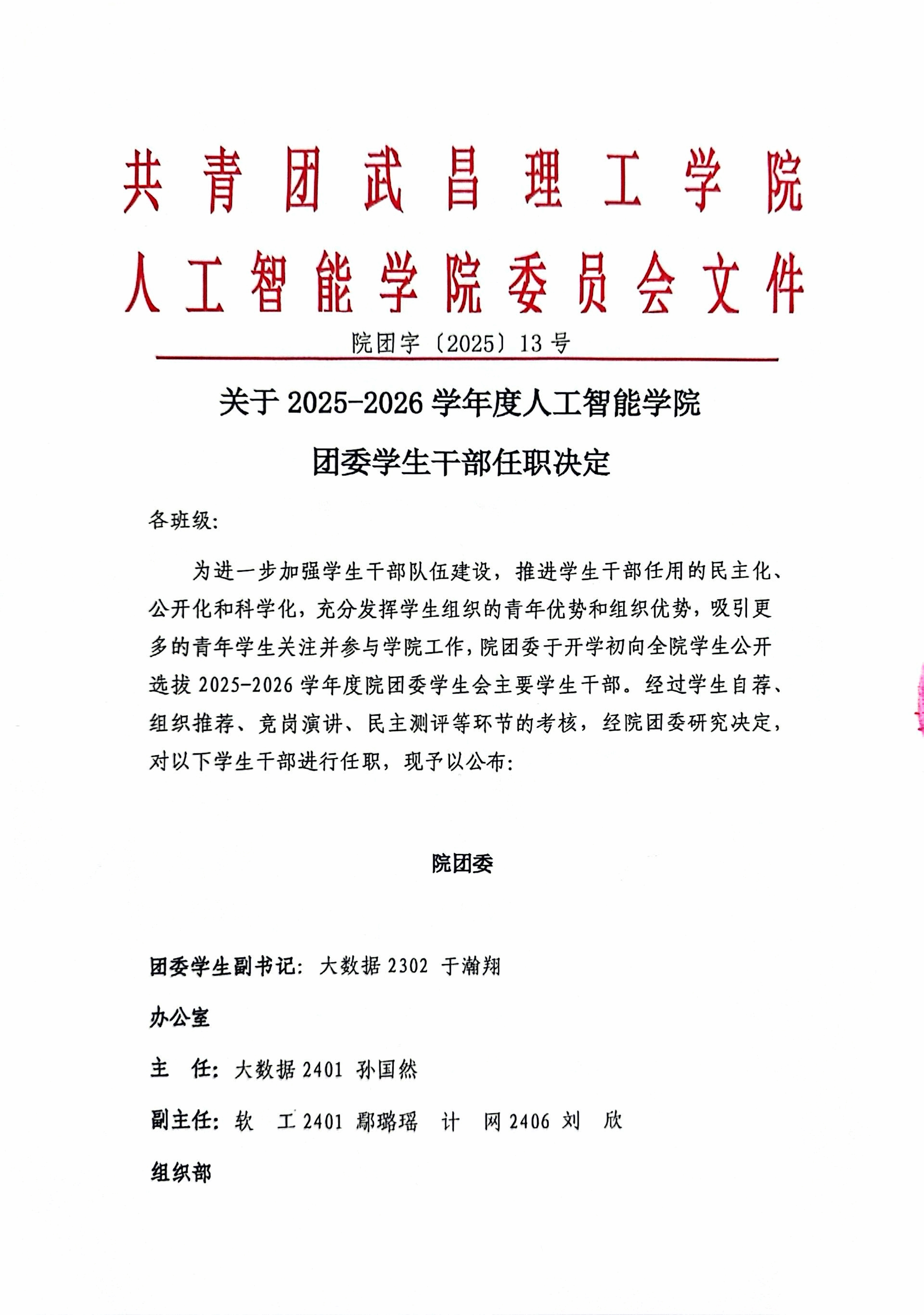 2025-2026学年度人工智能学院团委学生干部任职决定